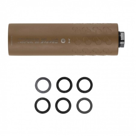 Tłumik dźwięku BK Precise DEAF45 został skonstruowany z myślą o wykorzystaniu pod intensywnym ogniem na broni samopowtarzalnej. Wykorzystana technologia Side Flow nie tylko ogranicza odrzut, ale również przegazowanie broni, dzięki czemu podczas dynamicznych strzelań nie będziemy skazani na oddychanie gazami wentylującymi się przy naszej twarzy. Powierzchnia urządzenia została pokryta najpopularniejszym systemem powłok ceramicznych - Cerakote - który gwarantuje zabezpieczenie przed kwaśnym środowiskiem tworzonym przez pozostałości prochu. Bazowy hamulec wylotowy otrzymał natomiast elektrochemiczną powłokę Tenifer, zabezpieczającą go zarówno przed korozją, jak i wycieraniem pod wpływem kontaktu z tłumikiem.