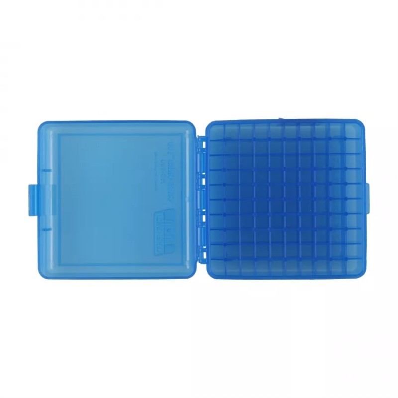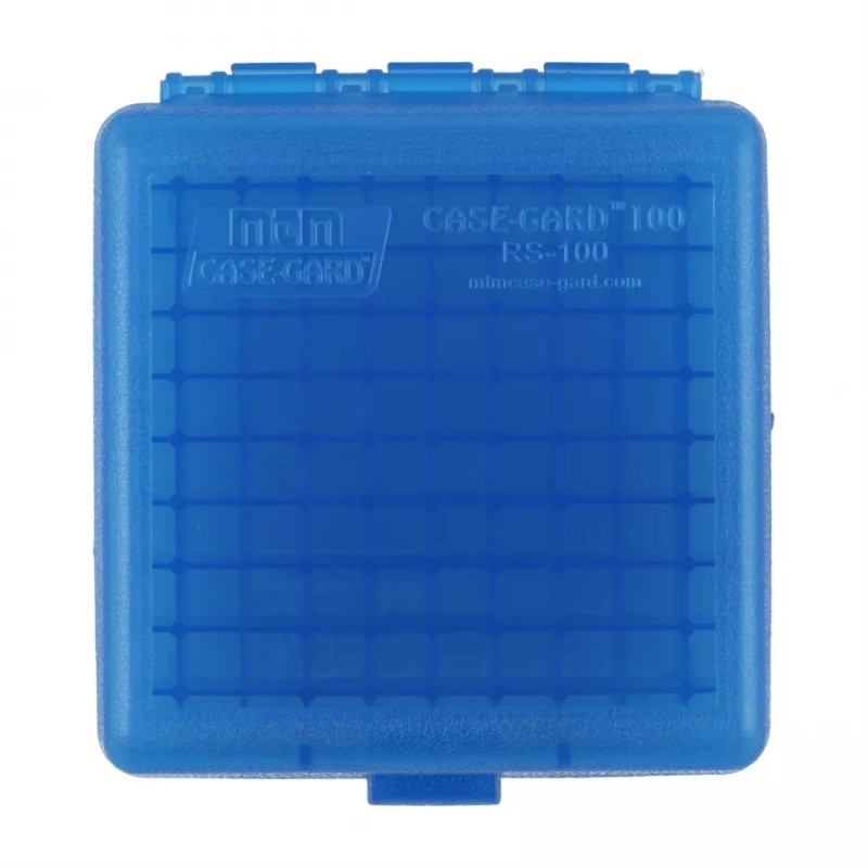 Pudełko na amunicję MTM RS-50-24 to proste i solidne etui na 100 sztuk amunicji kulowej. Wykonane z przeźroczystego, zabarwionego na niebiesko tworzywa umożliwia wygodny transport amunicji.