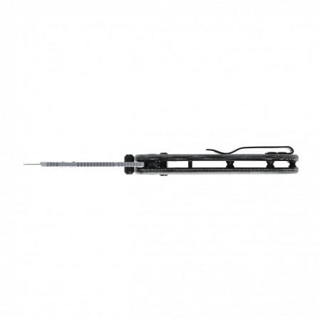 Rękojeść wykonana z Micarty to gwarancja pewnego chwytu w każdych warunkach — od wilgotnych dłoni po trudne warunki w terenie. Jej wyprofilowany kształt idealnie dopasowuje się do dłoni, zapewniając stabilność i komfort nawet przy długim użytkowaniu. Dzięki niskiej masie (82 g) i klipsowi typu Deep Carry, nóż możesz mieć zawsze przy sobie, nie rezygnując z wygody ani dyskrecji.