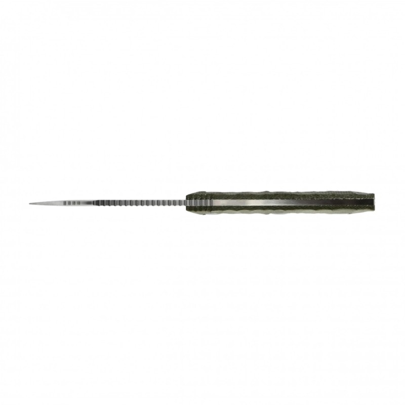 W nożu zastosowano trwałe okładziny rękojeści z Micarty. Kompozyt ten jest wykonany z materiałów cechujących się dużą wytrzymałością i trwałością na lata oraz odpornością na wilgoć czy niekorzystne warunki atmosferyczne. Dodatkowo porowata faktura zapewnia antypoślizgowy chwyt i niepowtarzalną estetykę.