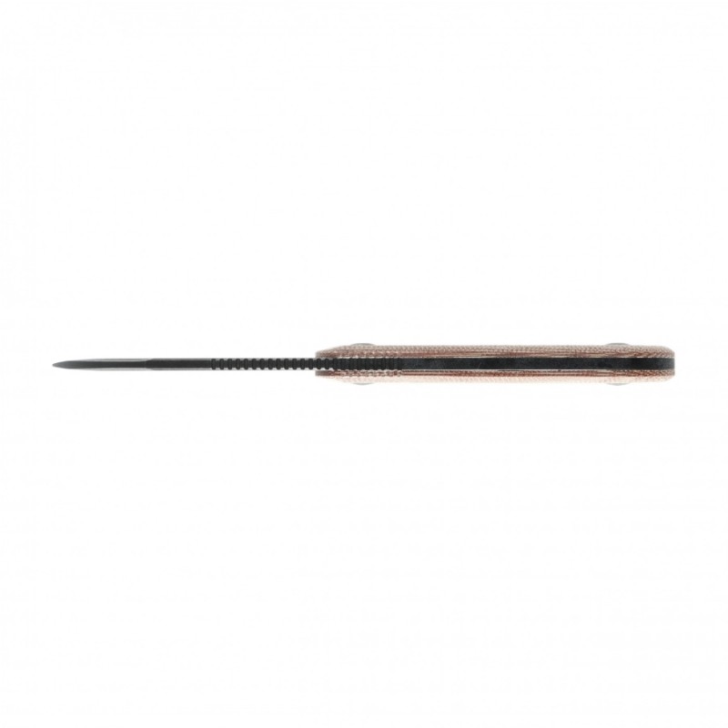 Rękojeść wykonano z Micarty, kompozytowego materiału z płótna prasowanego pod ciśnieniem z syntetyczną żywicą. Krawędzie okładzin są gładkie i zapewniają ergonomiczny, wygodny chwyt. W tylnej części rękojeści umieszczono otwór oraz linkę, która polepsza kontrolę nad nożem.