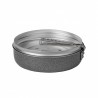 Składany uchwyt składa się jednym ruchem i nie wystaje w plecaku – całość zajmuje minimum miejsca i waży tylko 359 g. Dzięki wysokim ściankom patelnia pewnie leży na palniku i wygodnie się nią operuje, również w rękawicach. To sprzęt, który po prostu działa: wyjmujesz, rozkładasz i gotujesz bez kombinowania.