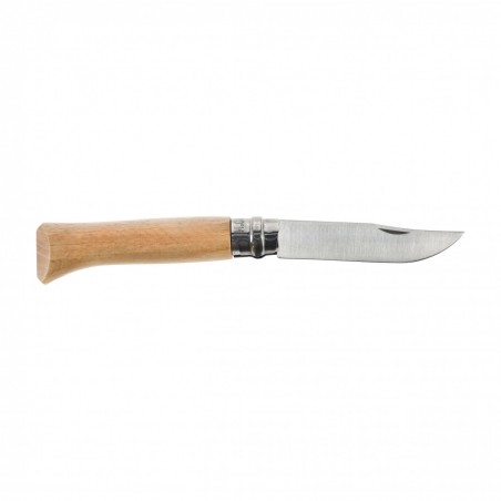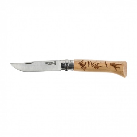Nóż składany Opinel 08 Sport Climbing to klasyk, który łączy niezawodność z charakterem inspirowanym wspinaczką. Ergonomiczna rękojeść z lakierowanego drewna bukowego pewnie leży w dłoni, a subtelne motywy alpinistyczne dodają mu wyrazistości. To kompaktowe, lekkie narzędzie, które bez trudu zmieścisz w kieszeni, apteczce czy organizerze — idealne na biwak, w podróży i na co dzień.