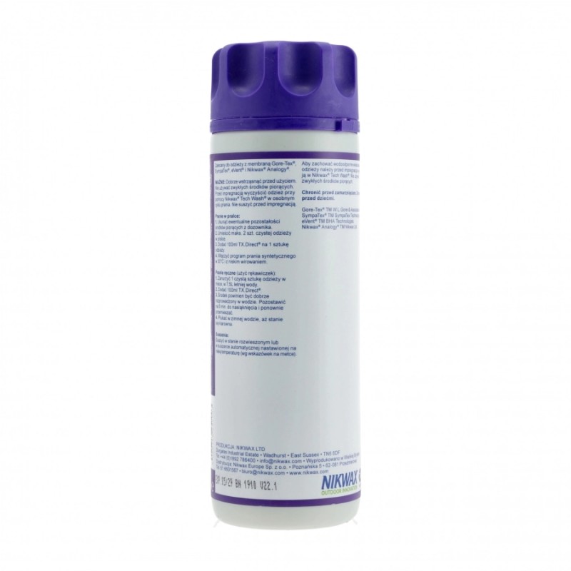 Nikwax TX-DIRECT Wash-In o pojemności 300 ml to stosowany do prania ręcznego lub w pralce automatycznej impregnat przeznaczony do odzieży przeciwdeszczowej. Przywraca jej właściwości wodoodporne oraz oddychające. Nadaje się do tkanin bez podpinek absorbujących wilgoć i wyposażonych w specjalne membrany.