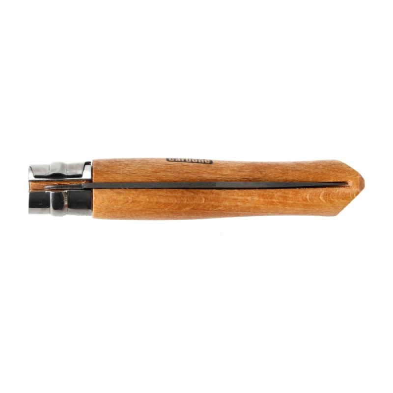 Klasyczny i wyjątkowo lekki model francuskiej firmy Opinel, produkującej noże już od ponad 100 lat. Cienkie ostrze z płaskim szlifem wykonane jest ze stali węglowej, charakteryzującej się łatwością ostrzenia oraz długim trzymaniem ostrości. Ponieważ stal węglowa wymaga nieco większej opieki, dlatego po każdym użyciu należy ją dokładnie wysuszyć i przetrzeć oliwką – zastosowanie się do tej prostej wskazówki, uchroni nasze ostrze od rdzy.