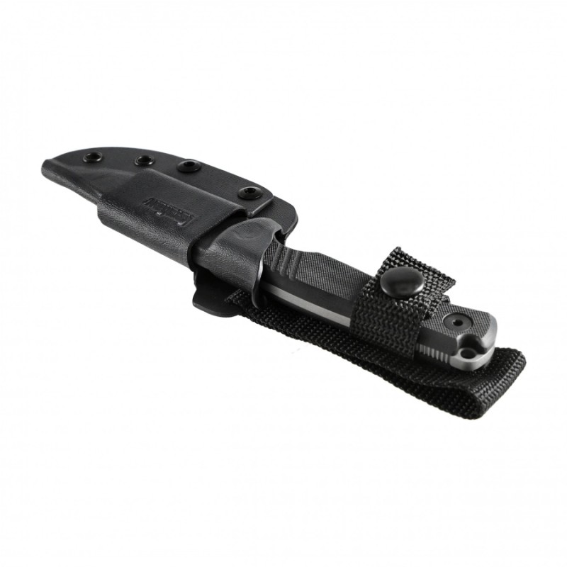 Kershaw Pack Mule 1089 to nóż ze stałą klingą skonstruowany z myślą o zastosowaniu taktycznym oraz outdoorowym. Wyposażony jest w solidne ostrze o profilu Clip-Point ze stali N690, które zostało pokryte trwałym wykończeniem, oferującym odporność w trudnych warunkach terenowych i niekorzystnych warunkach atmosferycznych. Karbowanie (Jimping) na grzbiecie głowni zwiększa kontrolę przy precyzyjnym cięciu. W zestawie z nożem otrzymasz solidną pochwę z Kydexu.