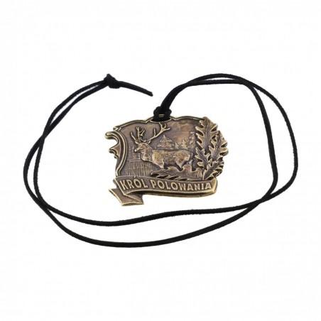 Medal odlewany Golden Fox "Król Polowania" przedstawia wizerunek jelenia w pełnej krasie, otoczonego liśćmi dębu, symbolizującymi siłę i majestat natury. Medal jest wykonany z metalu o charakterystycznym, złotym wykończeniu. Nadaje mu to elegancki i stylowy wygląd. Na dole znajduje się wstęga z napisem "Król Polowania", co czyni go idealnym wyróżnieniem dla najlepszego myśliwego. Do medalu dołączony jest czarny rzemyk, umożliwiający wygodne zawieszenie go na szyi lub prezentację jako trofeum.