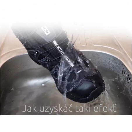 Wosk Nikwax do impregnacji obuwia wykonanego z tkaniny i skóry o bezbarwnym kolorze. Nakładany wygodnym aplikatorem w sprayu. Zapewnia pełną nieprzemakalność i oddychalność butów. Użycie impregnatu może spowodować nieznaczną zmianę koloru obuwia. Należy wypróbować na najmniej widocznym miejscu, np. na języku obuwia. Nie wolno dopuścić, aby środek dostał się do oczu. Przechowywać poza zasięgiem dzieci. Nie spożywać.