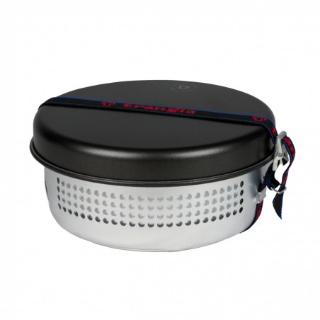 Sercem zestawu jest wydajny palnik spirytusowy (ok. 1000 W), który w połączeniu z osłoną przeciwwiatrową pracuje stabilnie i oszczędnie. Dwa garnki (1,5 l i 1,75 l) oraz patelnia 22 cm pozwalają gotować równolegle, więc szybciej nakarmisz ekipę i sprawnie podasz żywność turystyczną. Aluminiowe naczynia równomiernie rozprowadzają ciepło, a dołączony uchwyt ułatwia bezpieczne przenoszenie gorących naczyń.