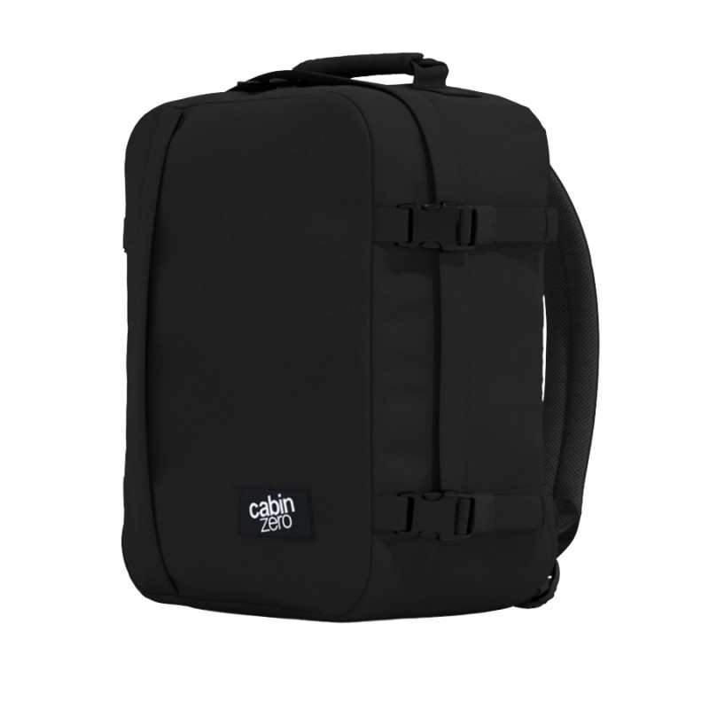 Szukasz bagażu, który przejdzie kontrolę wymiarów w Wizz Air i równie dobrze sprawdzi się na co dzień? CabinZero Classic 28 litrów w kolorze intensywnej czerni to kompaktowy plecak podręczny do samolotu, który łączy wygodę pakowania z ergonomią noszenia. Jest lekki (600 g), pojemny (28 l) i pomyślany tak, byś spakował laptop, dokumenty A4, bidon i drobiazgi — bez nerwowego upychania. To idealny wybór dla osób, które cenią funkcjonalne plecaki miejskie i nie chcą żonglować torbami między lotem, dojazdami i codziennymi sprawami.