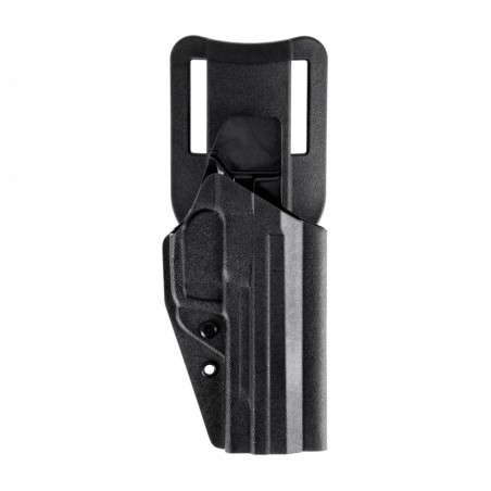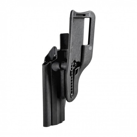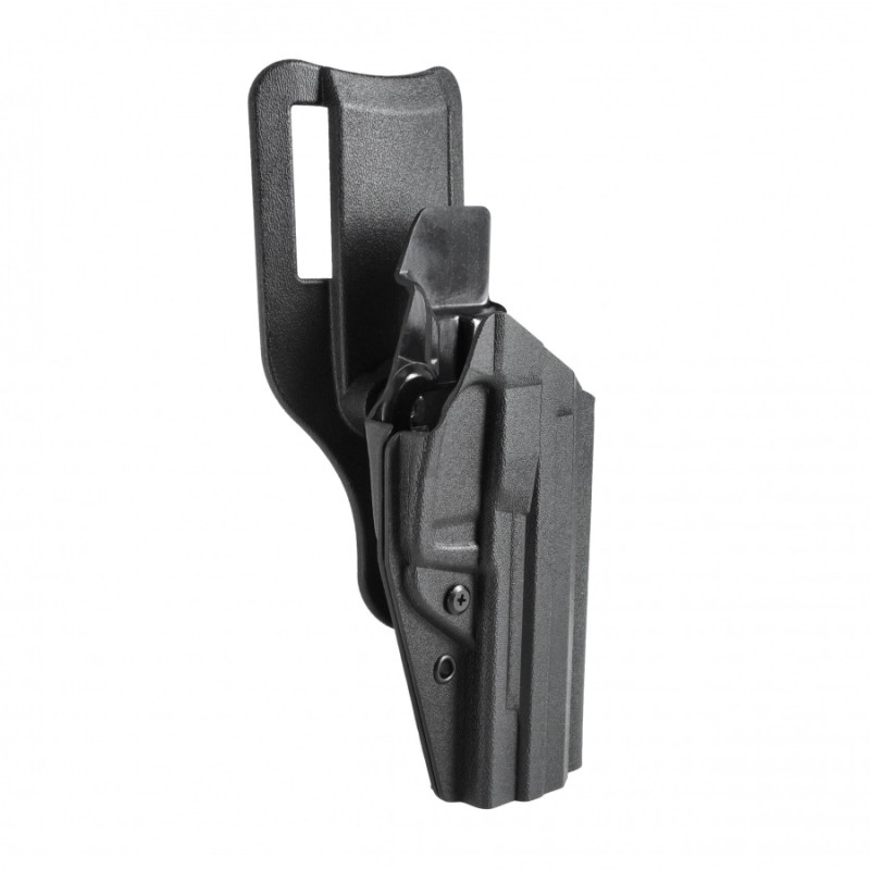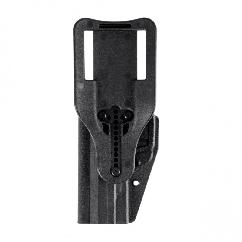 Kabura montowana jest na przelotowej, obniżonej platformie Mid-Ride, która umożliwia łatwe mocowanie na pasie taktycznym o szerokości maksymalnej do 45 mm. Obniżenie i przesunięcie broni na bok pozwala na wygodne i bezpieczne dobycie, a jednocześnie zapewnia, że pistolet nie zahacza o kamizelkę, nawet podczas dynamicznego ruchu czy intensywnych ćwiczeń.