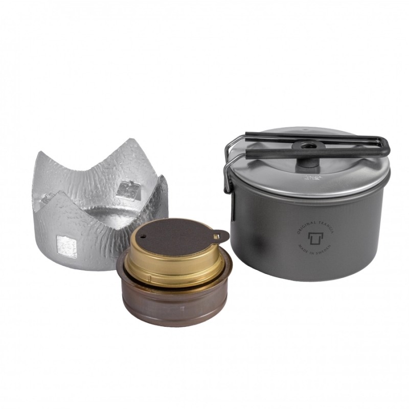 Przemyślana konstrukcja to również oszczędność miejsca w bagażu: podstawa na palnik i osłona ciepła mieszczą się w garnku, tworząc zwartą, lekką „puszkę” gotową do drogi. Całość waży zaledwie 282 g i po spakowaniu ma 112 × 83 mm, więc bez problemu zmieścisz ją w bocznej kieszeni plecaka lub w sakwie rowerowej.