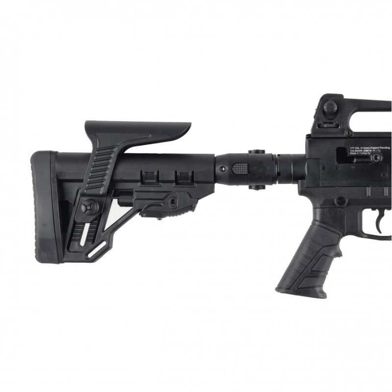 Wyposażona jest w składaną kolbę teleskopową o kilku pozycjach i regulowaną baką policzkową.