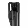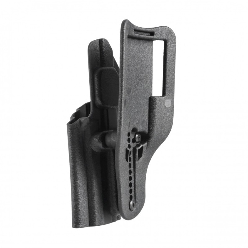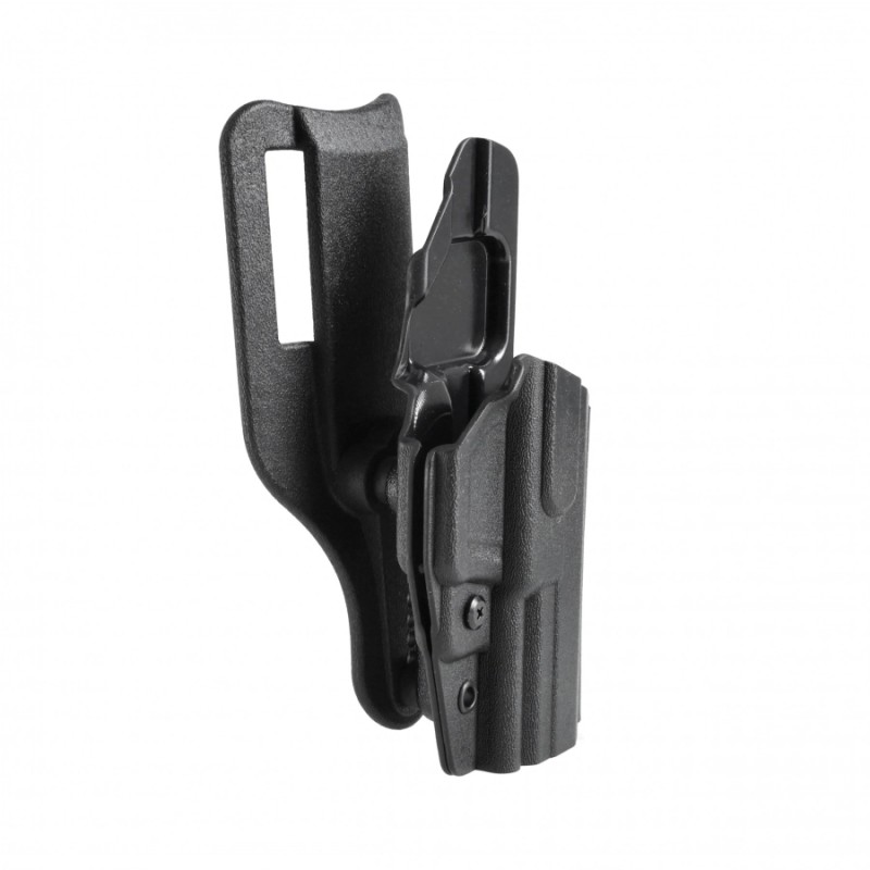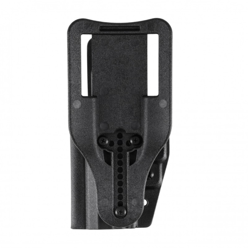 Kabura montowana jest na przelotowej, obniżonej platformie Mid-Ride, która umożliwia łatwe mocowanie na pasie taktycznym o szerokości maksymalnej do 45 mm. Obniżenie i przesunięcie broni na bok pozwala na wygodne i bezpieczne dobycie, a jednocześnie zapewnia, że pistolet nie zahacza o kamizelkę, nawet podczas dynamicznego ruchu czy intensywnych ćwiczeń.