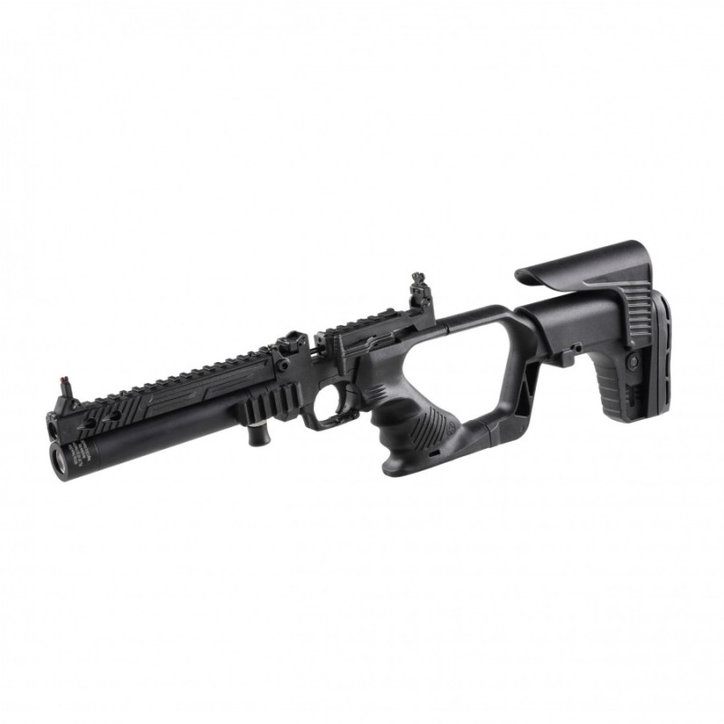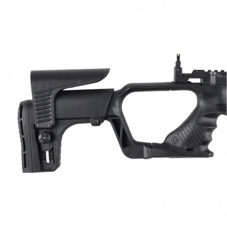 Projektanci nie zapomnieli o możliwościach montażu akcesoriów – wiatrówkę wyposażono w szynę Dovetail do montażu lunety lub kolimatora oraz boczne szyny Picatinny 22 mm na zasobniku powietrza, co daje dużą elastyczność przy personalizacji zestawu. Teleskopowa kolba TTS z regulacją długości i wysokości baki policzkowej oraz gumową, wentylowaną stopką zapewnia stabilne osadzenie przy strzale i wygodę podczas dłuższych sesji.
