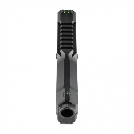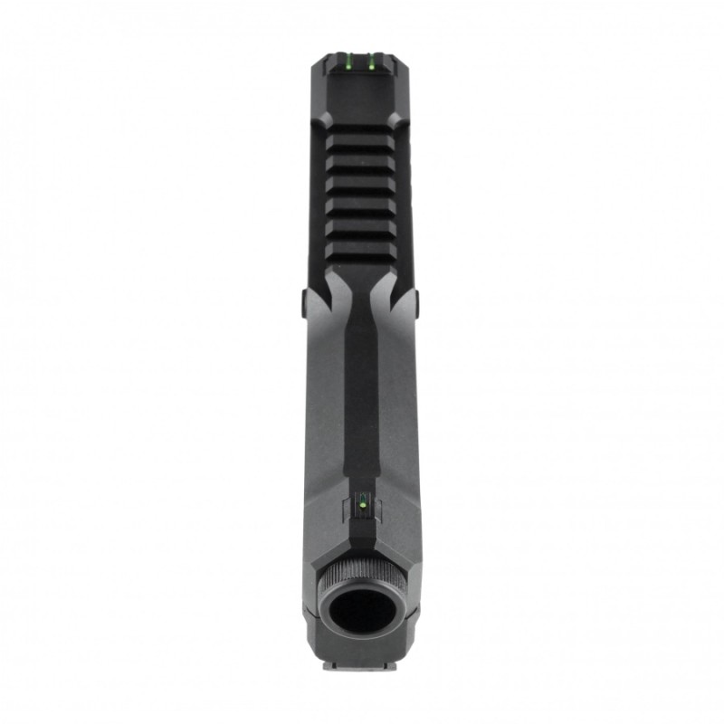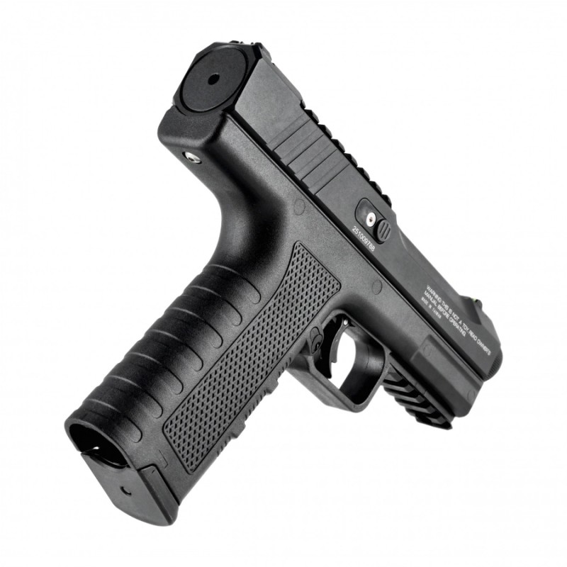 Wzmocniona obudowa z wytrzymałego polimeru oraz metalowe elementy wewnętrzne tworzą stabilną platformę, odporną na uszkodzenia, upadki i intensywne treningi. Pistolet charakteryzuje się świetnym wyważeniem i ergonomicznym chwytem, który zapewnia pewne prowadzenie również w sytuacjach stresowych. Niewielka masa — zaledwie 680 g — pozwala na szybkie dobycie, dynamiczne operowanie i precyzyjne oddawanie strzałów bez zmęczenia dłoni.