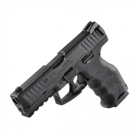 Powiększony kabłąk pozwala na komfortowe strzelanie również w rękawicach ochronnych. Heckler&Koch VP9 GBB 6 mm wykorzystuje przyrządy celownicze o stałej nastawie. Replika ma licencjonowane oznaczenia firmy Walther naniesione na zamek oraz szkielet.