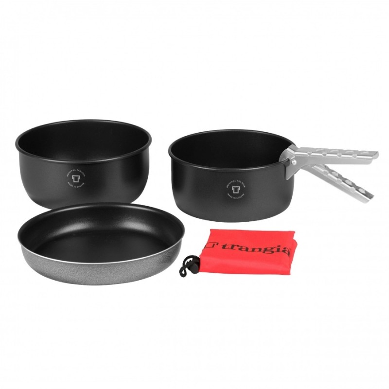 Zestaw jest kompatybilny z palnikami na paliwo płynne (w tym alkoholowymi) i gazowymi, dlatego łatwo dopasujesz źródło ognia do warunków i preferencji. Pojemności garnków 1,75 l i 1,5 l oraz patelni 0,9 l pozwalają wygodnie przygotować posiłek dla ekipy, od makaronu po liofilizaty – czyli Twoją ulubioną żywność turystyczną. Metalowy chwytak ułatwia bezpieczne przenoszenie gorących naczyń.