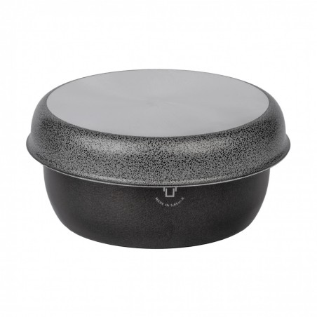 Naczynia wykonano z lekkiego, wytrzymałego aluminium UL i pokryto powłoką Non-Stick z PTFE (bez PFOA). Efekt? Mniej przywierania, mniej oleju, łatwiejsze mycie – nawet w zimnej wodzie w terenie. Patelnia ma pogrubione dno (1,4 mm), które równomiernie rozprowadza ciepło, więc naleśniki czy jajecznicę trudno przypalić.