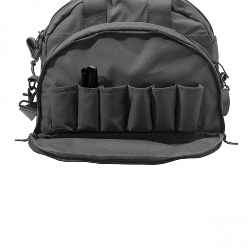 Cechy torby Beretta Tactical Range Bag:Zrywana konstrukcja klapy z wygodnym uchwytem zapewnia szybkie otwarcie torby, co jest niezwykle przydatne podczas szybkich zmian w trakcie strzelania. Rzepy oraz taśmy systemu MOLLE pozwalają na wpięcie dowolnych organizerów, co umożliwia jeszcze lepszą organizację wyposażenia. Cztery dodatkowe kieszenie na bokach torby pozwalają na sprawną organizację wyposażenia.