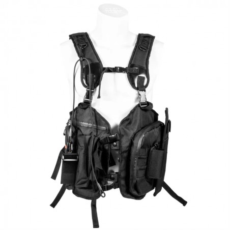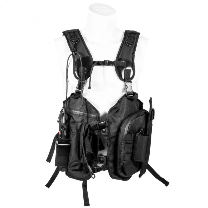Oprócz obustronnego systemu bungee kamizelka ma także miękkie, wyściełane szelki, które zapewniając komfort i równomierne rozłożenie ciężaru ekwipunku. Szelki mają szeroki zakres regulacji (do rozmiaru 4XL), który umożliwia dopasowanie rozmiaru do klatki piersiowej, bioder i talii.