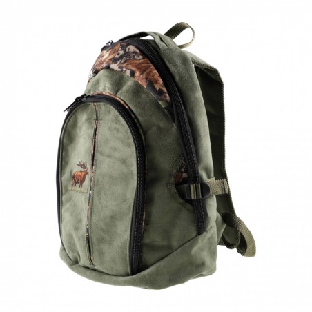 Zamszowy plecak myśliwski Forsport, model SMART Z03 to połączenie unikalnego stylu, dużej wytrzymałości i funkcjonalnych rozwiązań, które zadowolą nawet najbardziej wymagających użytkowników. Ten elegancki model plecaka, utrzymany w odcieniach zieleni, doskonale sprawdzi się zarówno podczas polowania, jak i na wędrówce w gęstym lesie. Dodatkowo na przodzie plecaka naniesiony został elegancki haft nawiązujący swym wyglądem do motywów zwierzęcych.