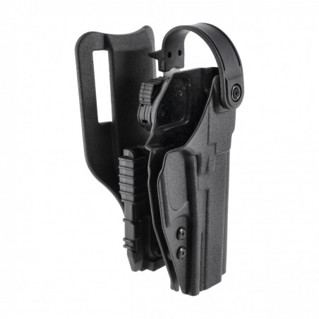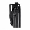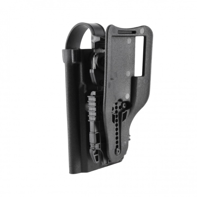 Kabura montowana jest na przelotowej, obniżonej platformie Mid-Ride, która umożliwia łatwe mocowanie na pasie taktycznym o szerokości maksymalnej do 45 mm. Obniżenie i przesunięcie broni na bok pozwala na wygodne i bezpieczne dobycie, a jednocześnie zapewnia, że pistolet nie zahacza o kamizelkę, nawet podczas dynamicznego ruchu czy intensywnych ćwiczeń.