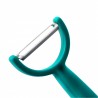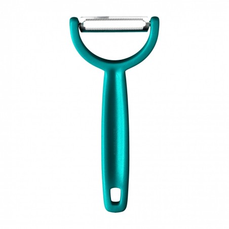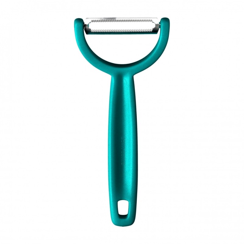 Uniwersalna obieraczka Victorinox YPSO to praktyczne narzędzie kuchenne służące do wygodnego i szybkiego obierania warzyw oraz owoców z miękkich i twardych skórek. Zaprojektowana została z ostrzem w ułożeniu poziomym, zyskując tym samym inną płaszczyznę ścinającą. Antypoślizgowa rękojeść o ergonomicznym profilu wykonana jest z solidnego tworzywa i ma dodatkowo otwór do zawieszenia. Ruchome ostrze wykonano ze stali nierdzewnej. Obieraczkę można myć pod bieżącą wodą oraz w zmywarce. Model jest w kolorze zielonym.