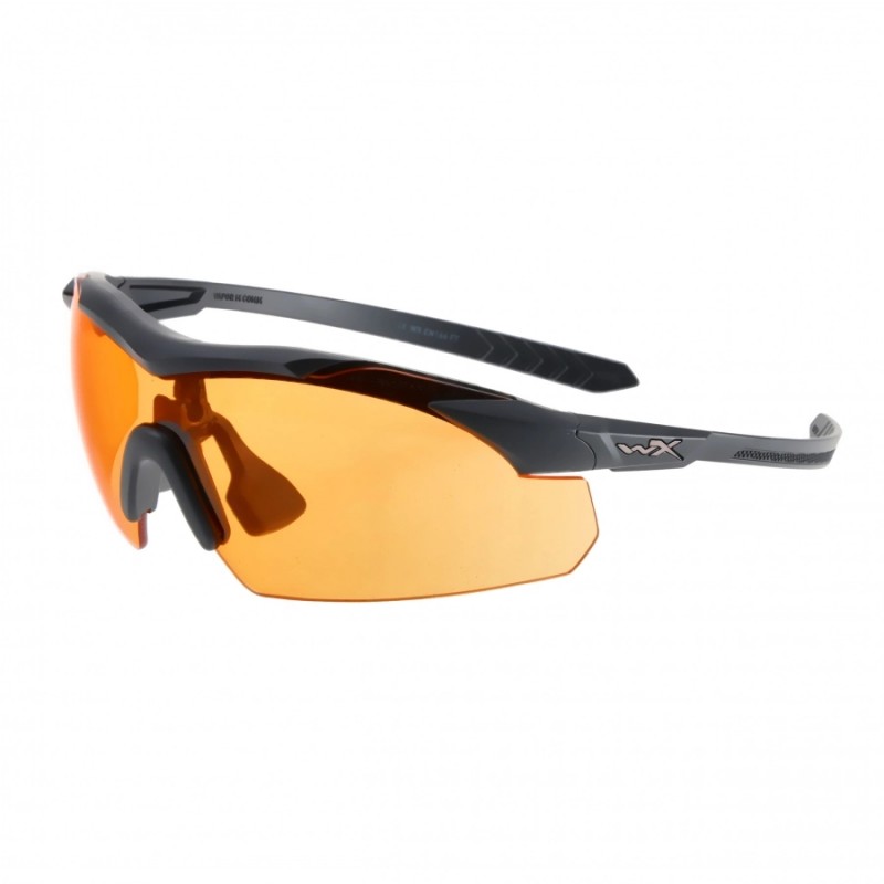 Okulary Wiley X Vapor Comm to zapewniają skuteczną ochronę wzroku. Wyposażone są w trzy wymienne soczewki (przezroczyste, żółte i pomarańczowe) z nietłukącego się poliwęglanu Selenite. Dodatkowo zapewniają one ochronę przed promieniowaniem UVA/UVB. Każda z soczewek pokryta jest dodatkowo powłoką T-Shell chroniącą przed zarysowaniami i powłoką Anti-Fog zapobiegającą zaparowaniu. Oprawki stanowią czarną ramę wykonaną z nylonu Triloid, materiału lekkiego, a jednocześnie wysoce odpornego na uszkodzenia, a ich konstrukcja została dopracowana pod kątem funkcjonalności. Wyprofilowane zauszniki Comm są w pełni kompatybilne z ochronnikami słuchu, a regulowany mostek Twist Lock umożliwia precyzyjne i komfortowe dopasowanie okularów do twarzy użytkownika.