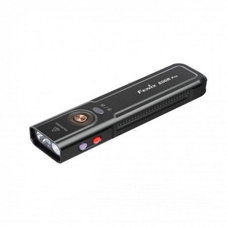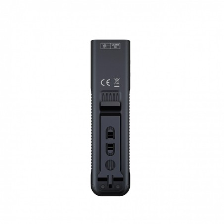 Obudowa Fenix E06R PRO została wykonana z anodowanego aluminium o wysokiej odporności na uderzenia. Model posiada płaski korpus o wymiarach 123 × 31 × 19 mm, co ułatwia przenoszenie w kieszeni oraz montaż przy pomocy klipsa 2-w-1. Latarka spełnia normę odporności IP66 i wytrzymuje upadki z wysokości do 1,5 m. Urządzeniem steruje się za pomocą dwóch przełączników: górny odpowiada za obsługę światła białego, a tylny za wybór trybów dodatkowych (UV, laser, efekty 3D). Każde źródło światła może być kontrolowane niezależnie, co pozwala na wykorzystanie urządzenia w różnych sytuacjach i scenariuszach.