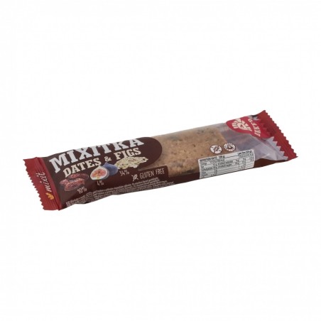 Mixitka Mixit daktyle z figami to energetyczny batonik o wadze 60 gramów z dodatkiem cukru trzcinowego. Jest to idealna przekąska między posiłkami lub małe co nieco podczas dowolnej aktywności fizycznej.