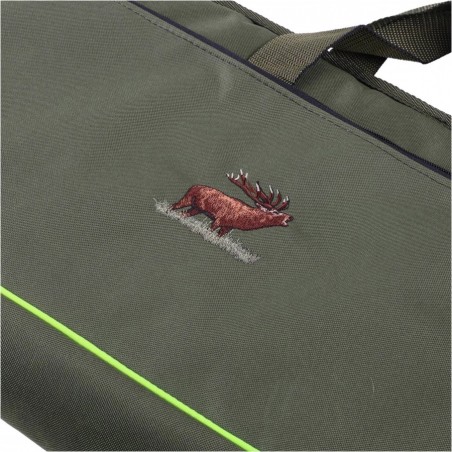 Pokrowiec na broń Forsport 144 cm termo i tłumik w kolorze oliwkowym to solidne i estetyczne akcesorium myśliwskie, zaprojektowane z myślą o bezpiecznym transporcie broni w każdych warunkach. Stonowana kolorystyka uzupełniona haftem przedstawiającym jelenia ryczącego w trawie podkreśla myśliwski charakter produktu i dobrze wpisuje się w stylistykę terenową. Długość 144 cm pozwala na wygodne przenoszenie broni długiej, także z zamontowaną optyką i tłumikiem, bez konieczności demontażu wyposażenia.