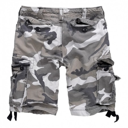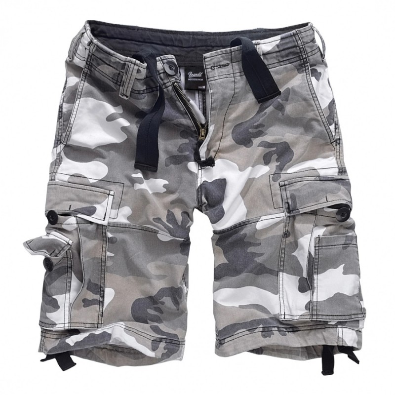 Szorty męskie Vintage Classic w kamuflarzu urban od firmy Brandit to krótkie spodenki wykonane w całości z bawełny, które poddano specjalnemu procesowi ścierania, który nadał tkaninie charakterystycznego wyglądu sprania.