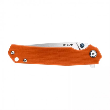 Rozkładanie noża Ruike P801-J to czysta przyjemność. Dzięki zastosowaniu stalowych łożysk kulkowych, flippera oraz obustronnego kołka użytkowanie noże cieszy każdego dnia. Po naciśnięciu flippera lub podważeniu kołka głownia otwiera się lekko i dynamicznie. Wspomniany flipper pełni również rolę jelca (ogranicznika), zapobiegającego zsunięciu się dłoni na ostrze podczas pracy.