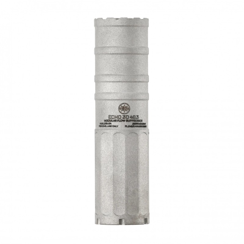 ECHO 3D wyposażono we wszechstronne złącze HUB w standardzie 1.375-24, dzięki czemu współpracuje z popularnymi adapterami i systemami montażowymi dostępnymi na rynku. Monolityczny korpus z nierdzewnej stali SS17-4PH gwarantuje wytrzymałość i odporność na eksploatację, a powłoka Cerakote chroni powierzchnię i daje unikalny, taktyczny wygląd. Przekłada się to na komfort użytkowania — tłumik gotowy do działania w każdych warunkach.