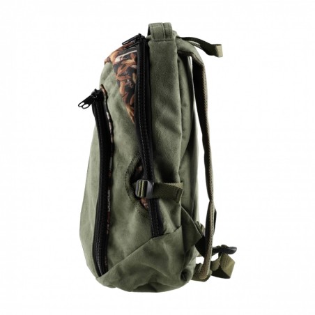 Zamszowy plecak myśliwski Forsport, model SMART Z04 to połączenie unikalnego stylu, dużej wytrzymałości i funkcjonalnych rozwiązań, które zadowolą nawet najbardziej wymagających użytkowników. Ten elegancki model plecaka, utrzymany w odcieniach zieleni, doskonale sprawdzi się zarówno podczas polowania, jak i na wędrówce w gęstym lesie. Dodatkowo na przodzie plecaka naniesiony został elegancki haft nawiązujący swym wyglądem do motywów zwierzęcych.
