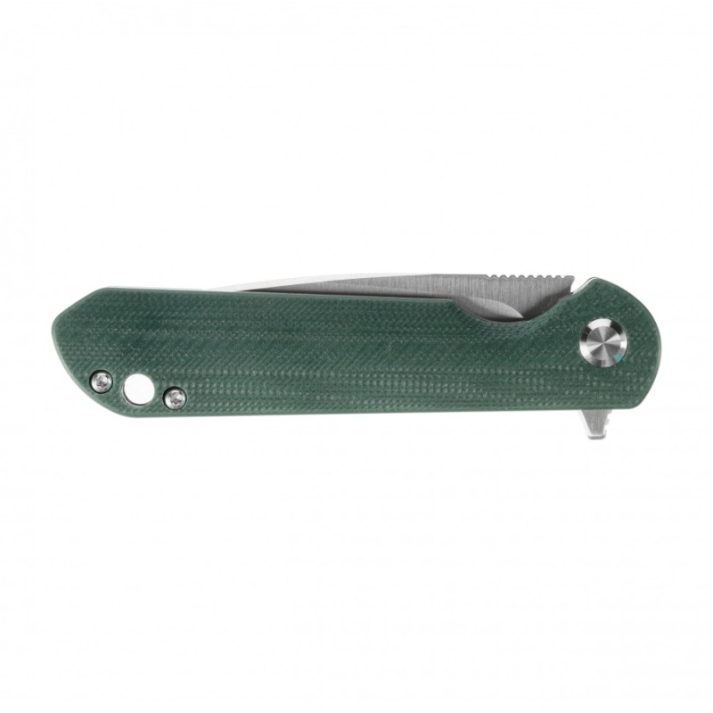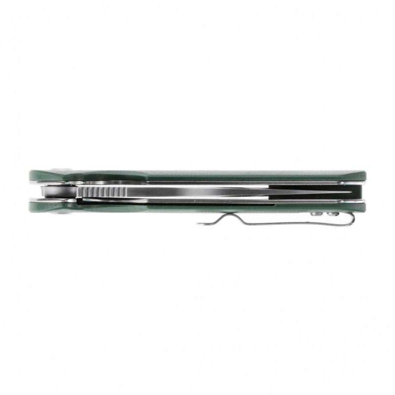 Rękojeść noża tworzą proste okładziny z czarnego laminatu G10, materiału odpornego na udar mechaniczny, wysoką temperaturę oraz działanie niektórych aktywnych substancji chemicznych. Nóż waży zaledwie 101 g, nie obciąża zatem naszej kieszeni i nie powoduje dyskomfortu podczas codziennego przenoszenia.