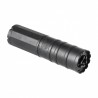 Wewnętrzna konstrukcja ECHO 3D to przemyślany układ modułów, dyfuzorów i dysz kierujących przepływem gazów. Zastosowanie dyfuzora przedniego, korony do rozbijania przeszkód i flash-hidera opartego na zjawisku Venturiego sprawia, że gaz opuszcza tłumik w sposób kontrolowany — co przekłada się na obniżony odrzut, mniejszy ciśnieniowy „kop” i czystszy odgłos strzału. Dodatkowo specjalne wyloty dysz wspomagają samoczynne „dokręcanie” tłumika na urządzeniu wylotowym, zwiększając pewność osadzenia.