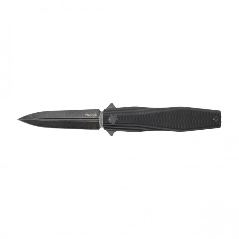 Folder Ruike charakteryzuje się ostrzem o profilu Dagger zaostrzonej na obu krawędziach oraz mechanizmem Liner Lock z dodatkowym systemem bezpieczeństwa „Thumb Up".