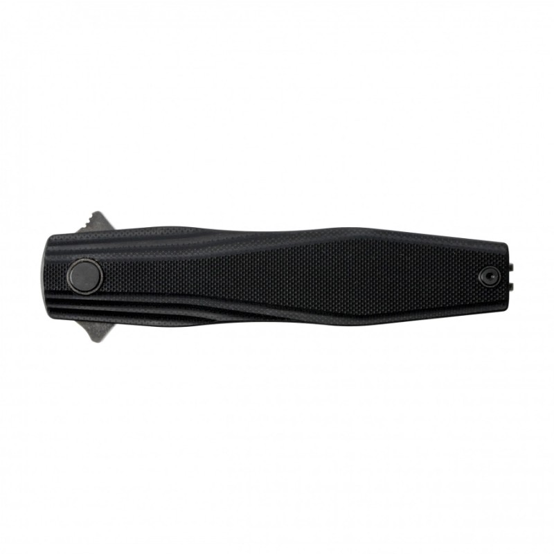 Ostrze zostało wykończone metodą Black Stonewash, które dobrze maskują małe zarysowania, powstające w trakcie normalnego użytkowania noża.