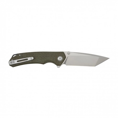 Klingę Civivi Brazen wykuto ze stali narzędziowej D2, zapewniającej trwałość i odporność na korozję. Masywną głownię typu tanto, zahartowaną do 59-61 HRC, otwieraną za pomocą kołka pod kciuk, wykończono metodą Bead Blast. Rękojeść wykonano z mikarty. Całość blokuje sprawdzony mechanizm liner lock.