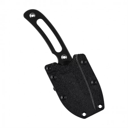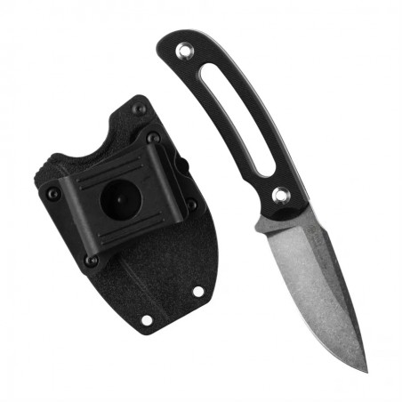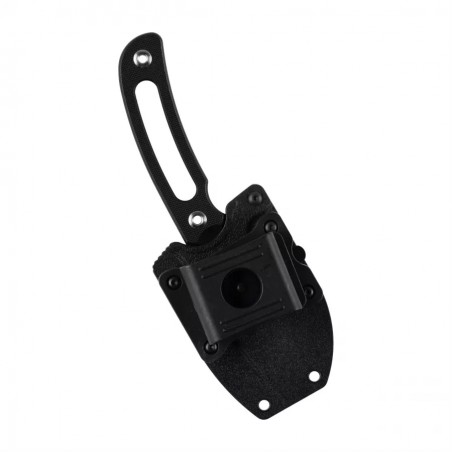 Do noża dołączona jest plastikowa pochewka, umożliwiająca przymocowanie go do paska lub innego elementu wyposażenia, co ułatwia jego przenoszenie.