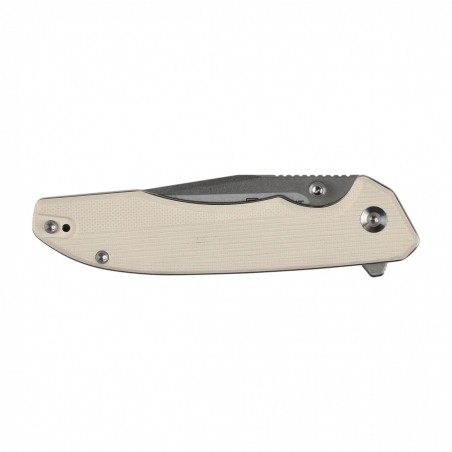 W nożu Sencut Sylor zastosowano okładziny rękojeści wykonane z tworzywa G-10 Ivory w kolorze kości słoniowej. Jest to wytrzymały i lekki kompozyt wykonany z laminatu szklano-epoksydowego. Charakteryzuje się on wysoką odpornością na wilgoć, chemikalia i ekstremalne temperatury. Dodatkowo teksturowana powierzchnia przekłada się na pewny chwyt, co dodatkowo zwiększa kontrolę nad nożem podczas użytkowania. Do noża możesz dołączyć linkę lub paracord.