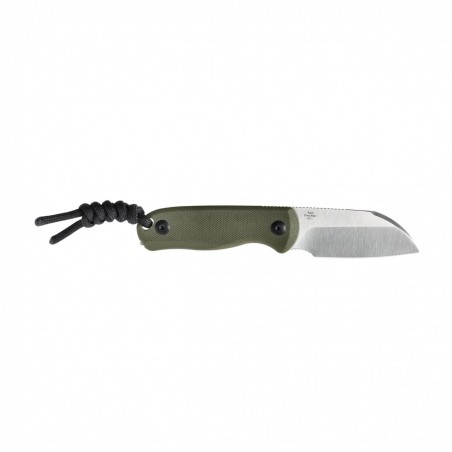 W nożu zastosowano rękojeść z G10. Jest to wytrzymały i lekki kompozyt wykonany z laminatu szklano-epoksydowego. Charakteryzuje się wysoką odpornością na wilgoć, chemikalia i ekstremalne temperatury. Dodatkowo teksturowana powierzchnia zapewnia pewny chwyt, co zwiększa kontrolę nad nożem podczas użytkowania.