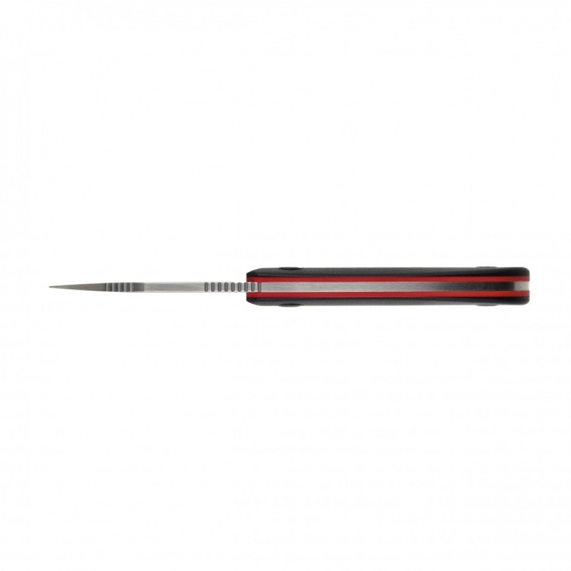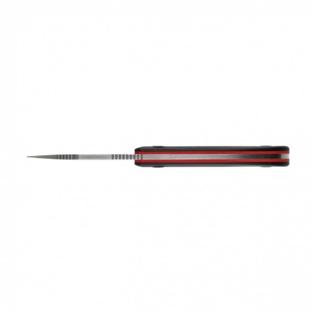 W nożu Kizer Snick zastosowano okładziny rękojeści z tworzywa G10. Jest to wytrzymały i lekki kompozyt wykonany z laminatu szklano-epoksydowego. Charakteryzuje się wysoką odpornością na wilgoć, chemikalia i ekstremalne temperatury. Dodatkowo teksturowana powierzchnia przekłada się na pewny chwyt, co dodatkowo zwiększa kontrolę nad nożem podczas użytkowania. Na końcu rękojeści znajduje się otwór na paracord lub smycz.
