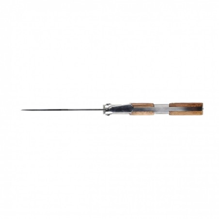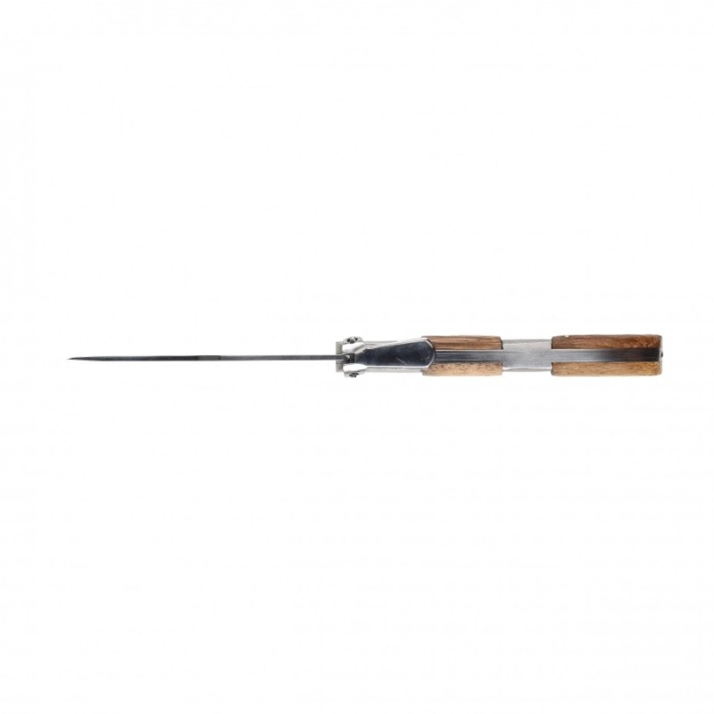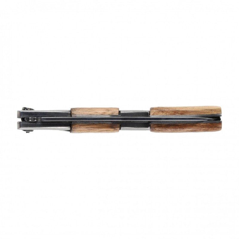 Joker Arabe JKR0926 to poręczny nóż składany wyprodukowany przez hiszpańską markę Joker. Jest to uniwersalny typ narzędzia biwakowego, myśliwskiego czy też EDC, który wyposażono w głownię Clip Point ze stali 3cr13mov. Rozkładanie ostrza ułatwia podcięcie na paznokieć, a jego zablokowanie jest możliwe dzięki baskijskiej wersji blokady Back Lock. Nóż wyposażono również w metalową rękojeść z eleganckimi wstawkami z drewna Zebrawood.