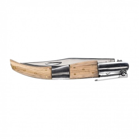 Zastosowana tu blokada to baskijska wersja Back Lock (nazywana też Cierre de Muella de Pistón). Jest to tradycyjny hiszpański mechanizm, w którym długa sprężyna blokująca znajduje się na grzbiecie rękojeści, a dźwignia zwalniająca umieszczona jest charakterystycznie na samym jej końcu. Odróżnia się od klasycznego Back Locka obecnością przycisku odblokowującego przy osi obrotu ostrza, a nie na środku rękojeści.