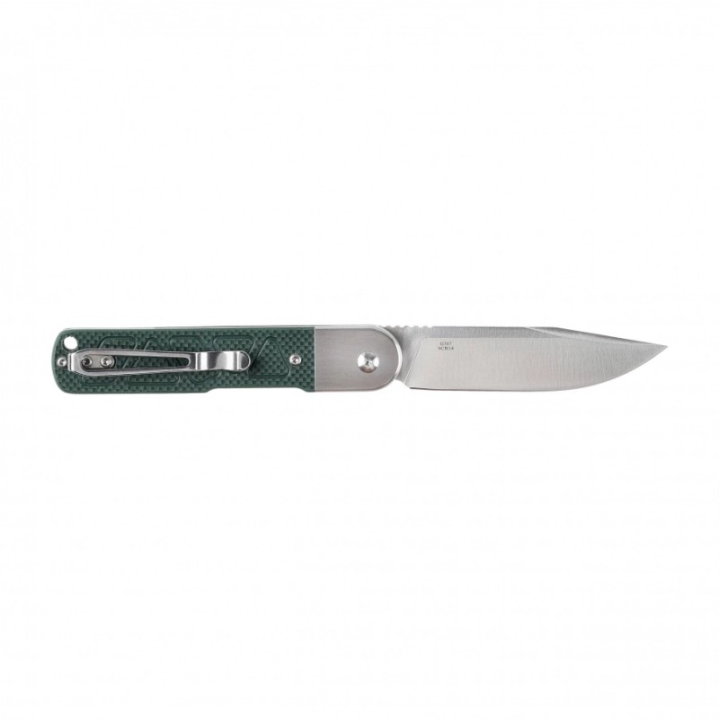 W konstrukcji noża dużą rolę odgrywa rękojeść, od niej bowiem zależy komfort oraz bezpieczeństwo użytkowania. W Ganzo G767-GB zastosowano stalowe linersy z okładzinami z tworzywa. Kratkowana tekstura chwytu powoduje, że nóż pewnie i wygodnie leży również w mokrej lub zmarzniętej dłoni. Stalowy klips Deep Carry (tip down, bez opcji przełożenia na drugą stronę) ułatwia dyskretne noszenie noża w kieszeni.