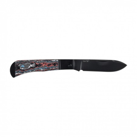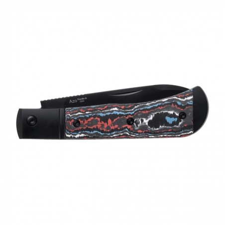 Rękojeść noża została zaprojektowana z dbałością o każdy detal. Zaokrąglone krawędzie i ergonomiczny profil gwarantują wygodny, pewny chwyt oraz minimalizują zmęczenie dłoni. Połączenie aluminiowych bolsterów z efektowną wkładką Fat Carbon tworzy unikatowy, artystyczny wygląd – każdy egzemplarz wyróżnia się indywidualnym układem kolorów i wzorów. To nóż, który nie tylko działa, ale także komunikuje wyrafinowany gust właściciela.