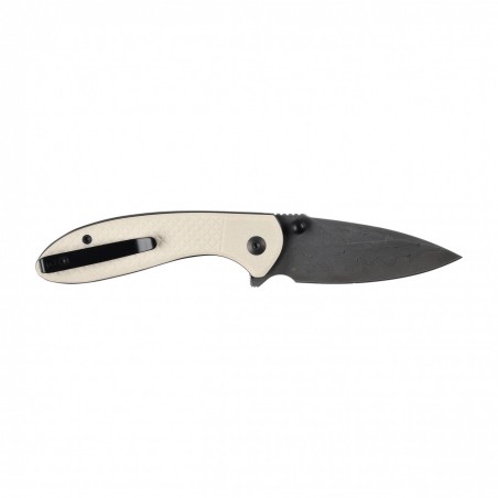 Największym atutem modelu Faeger Ivory G10 jest ostrze o długości 76 mm ze stali Damascus, które nie tylko wyróżnia się unikalnym rysunkiem warstw, ale także doskonałymi właściwościami użytkowymi. Twardość na poziomie 58–60 HRC gwarantuje długotrwałe utrzymywanie ostrości, a profil drop point w połączeniu z wklęsłym szlifem umożliwia precyzyjne cięcia i wszechstronność w codziennych zadaniach.